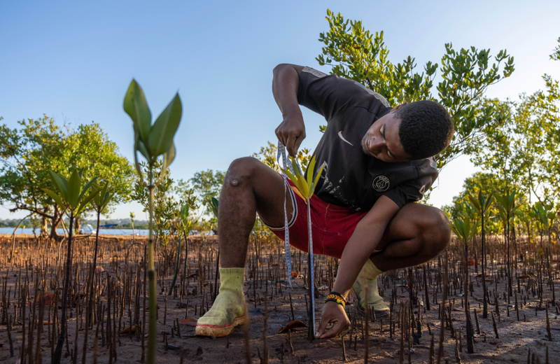 Mangrove planting in Ankilahila, Madagascar - early-stage investment in projects like this through future carbon sourcing helps scale impact from the ground up.
